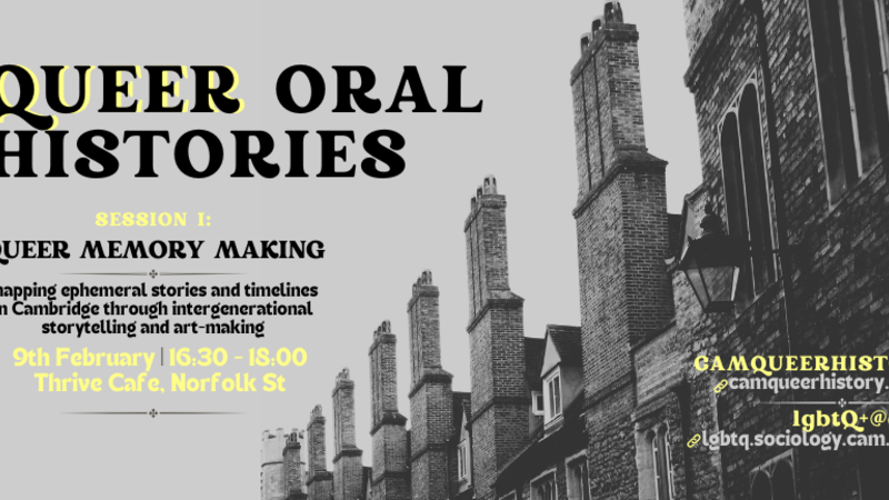 | Queer Oral Histories: Memory MakingHosted with CamQueerHistory at Thrive Cafe9th February | 16:30 - 18:00 |
