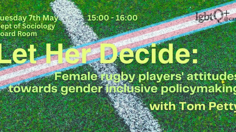 | Let Her Decide: Female Rugby Players' Attitudes Towards Inclusive Policymaking with Tom PettyHosted by Q+7th May |